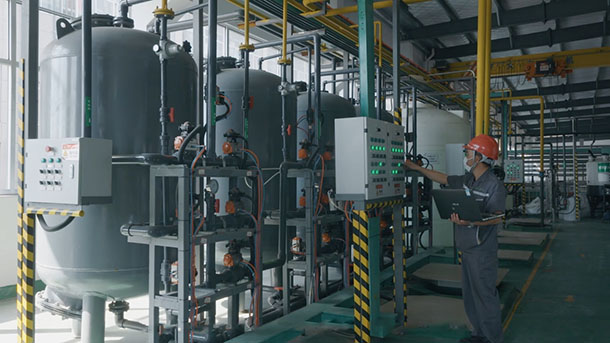 走進(jìn)中新聯(lián)科電鍍廢水處理車(chē)間,映入眼簾的是縱橫交錯(cuò)的管網(wǎng)系統(tǒng)。電鍍廢水通過(guò)不同管道進(jìn)入處理系統(tǒng),經(jīng)過(guò)過(guò)濾、除油、膜分離等多道工序后,原本渾濁的廢水竟神奇地轉(zhuǎn)化為可直接回收利用的中水。更令人驚嘆的是,曾經(jīng)令人頭疼的重金屬污染物,則被提取成高純度鎳產(chǎn)品,成為可重返生產(chǎn)線的工業(yè)原料,實(shí)現(xiàn)資源回收再利用。這種廢水“淘金”的場(chǎng)景,正是中新聯(lián)科核心技術(shù)矩陣發(fā)力的縮影。